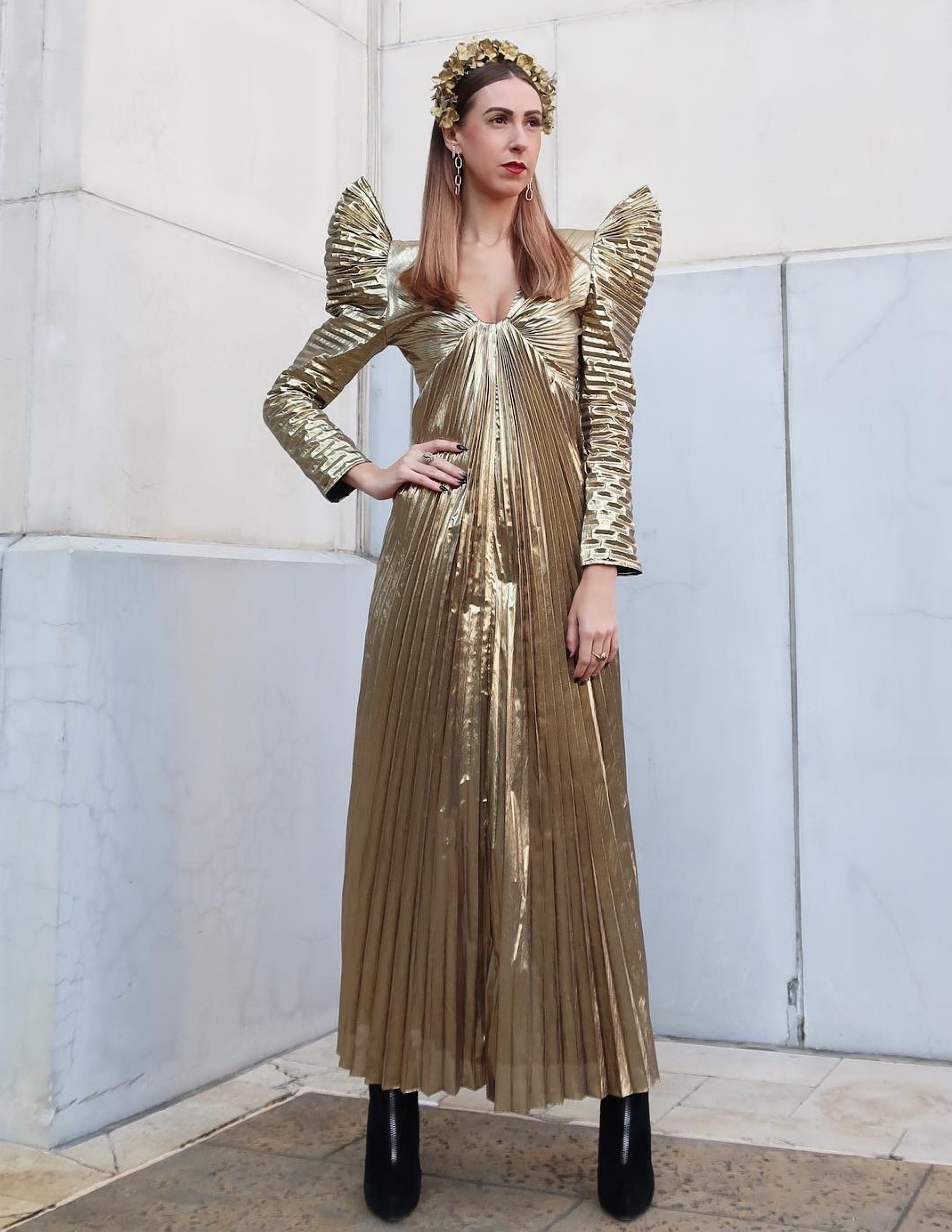 1980s GOLD LAMÉ PLEATED DRESS