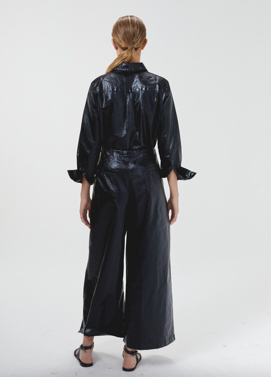 CULOTTE METALLIC LINEN PANTS IN BLACK