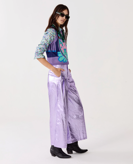 CULOTTE METALLIC LINEN PANTS IN VIOLET